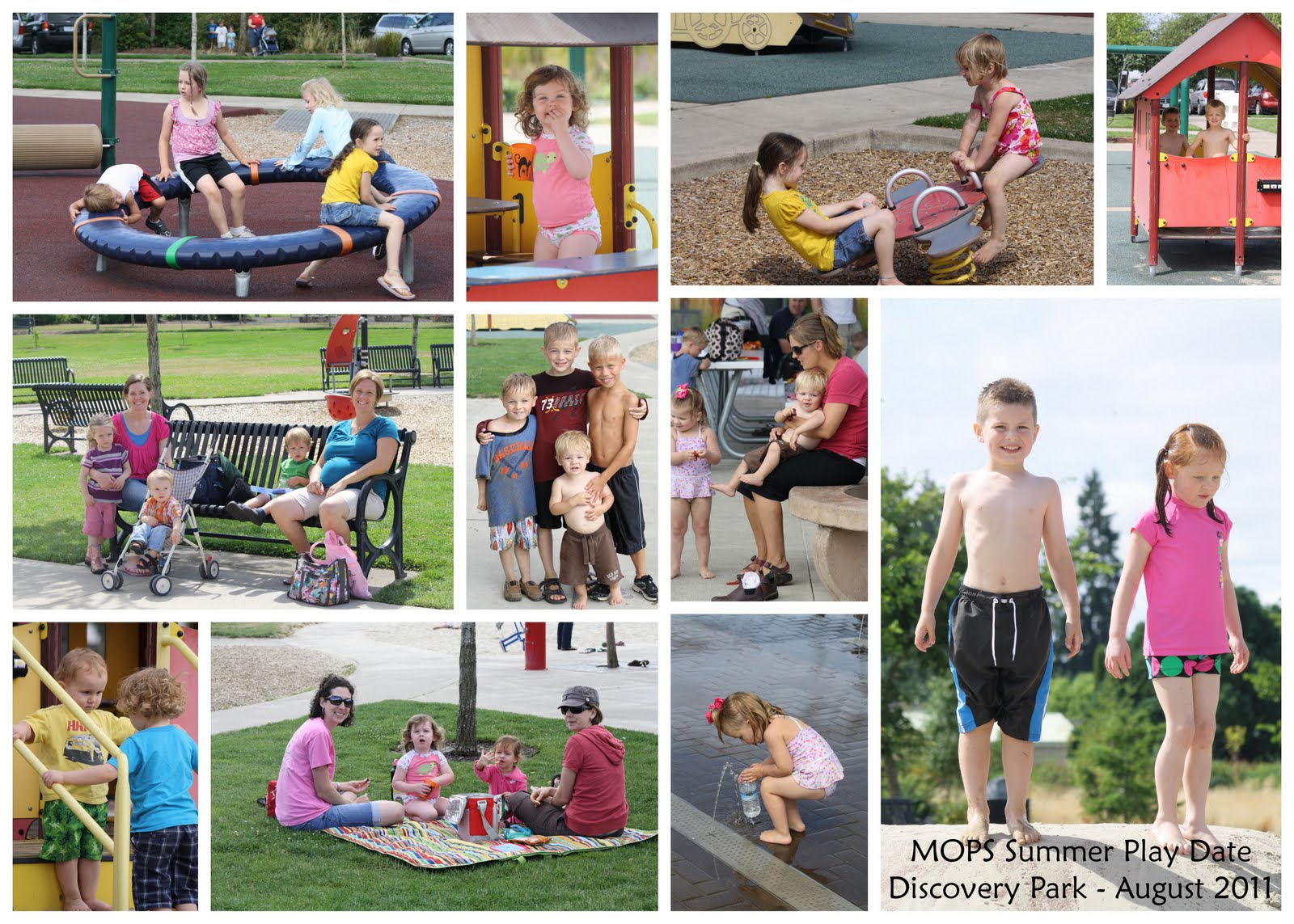 Near the end of August (the day after we got home from a long weekend of camping), we met up with our MOPS (Mothers of Preschoolers) group for a play date at Discovery Park...about 30 minutes south of us. I have been a part of this MOPS group since Mikayla was 6 months old and I was excited to be back for yet another year and to spend more time with these wonderful ladies and their kids! To kick off the new MOPS season, we headed to a fun park that I actually hadn't taken the kids to yet. I figured they would have a blast, so I put aside the running list in my head of "things to do" and we headed that way for some fun in the...sun? Not so much the sun! It actually turned out to be a cloudy, overcast morning (the day before was HOT!!) That's Oregon for you, but it didn't stop us, so I dressed the kiddos in bathing suits anyway to prepare for the chance of being able to play in the water.