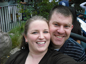 While still at California Adventure, we also took in the 3D show, It's Tough to be a Bug with the Bug's Life characters. Such a cute show with lots of fun surprises. (My husband's gonna kill me for showing these pictures!)Unfortunately our camera's battery went dead shortly thereafter, but we finished off the evening with heading back over to Disneyland, grabbing a bite to eat and hopping on Pirates of the Carribean, two times of Splash Mountain (no lines...should have guessed why after only one ride of getting a little more wet than I had anticipated; did I mention it was 8:00 at night, and cold?) We also rode Thunder Mountain Railroad twice with little lines. Afterwards, we grabbed a snack of chocolate caramel corn (heavenly!) and waited for the fireworks show. We waited in the crowds longer than we wanted to, but it was so worth it! The firework show was so amazing and it all ended with some "snow" over Main Street.